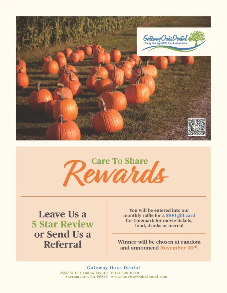 At Gateway Oaks Dental, we’re thankful for our wonderful patients who trust us with their smiles. This November, we're showing our thanks with a giveaway – leave us a 5-star review or refer a new patient for your chance to win a $100 gift card.